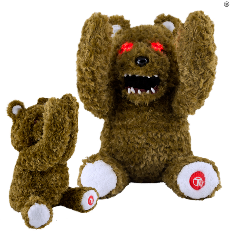 Cuddly Bear Becomes Monstrous Revealing Sharp Teeth and Evil, Glowing Eyes! Laughs Maniacally and Says 3 Creepy Phrases.